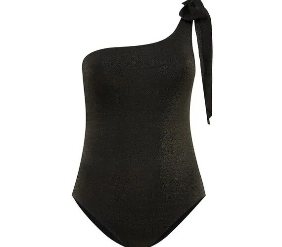 • Het badpak heeft één schouderband die schuin over de linkerschouder loopt voor een verleidelijke fit met een vaste strik