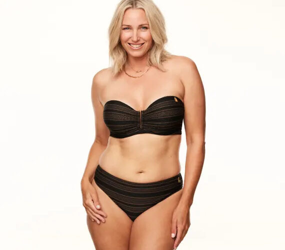 De The Valley strapless bikinitop van Annadiva Swim is uitgevoerd in de kleur Arabica Black. Het subtiel gestreepte design in Arabica-bruin en zwart zorgt voor een tijdloze en elegante uitstraling. Door de voorgevormde cups krijgen de borsten een mooie ronde vorm. Tussen de cups is de top versierd met een gouden beugeltje dat het decolleté accentueert. De bikinitop heeft afneembare bandjes en is naar wens te strikken in de nek. Voel je zelfverzekerd en stijlvol, waar je ook bent. Combineer deze bikinitop met een van de bijpassende bikinibroekjes en accessoires.
