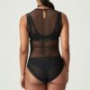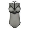 Nieuw: een volledig transparante body volledig uit zwarte tule, met grafische broderie aan de benen en middenvoor. Zwart satijn en transparante tule. Sexy en chic!