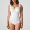 Luxueuze figuurcorrigerende body met driedelige beugelbh. Versierd met subtiel glanzende broderie! Een absolute must voor je lingerielade: Natuur.