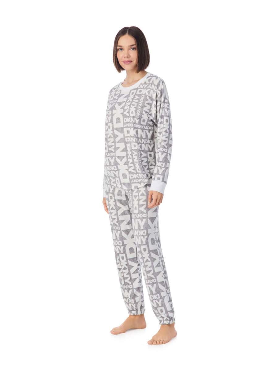 DKNY Long PJ Falling For All Grey Print