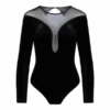 Verleidelijk, stijlvol en elegant – deze zwarte velvet body combineert luxe fluweel met verfijnde meshdetails. De zachte, glanzende stof voelt heerlijk comfortabel aan op de huid en geeft een chique uitstraling. Het transparante mesh bij de hals creëert een subtiele, sensuele touch, terwijl de lange mouwen en aansluitende pasvorm zorgen voor een elegante look met een moderne twist.