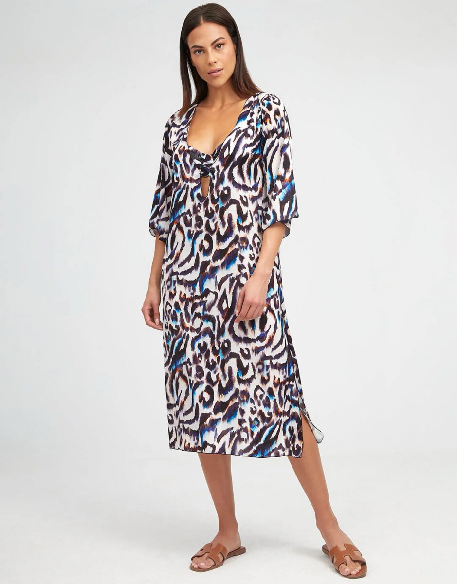 Lange tuniek, met print in zwart wit en blauw